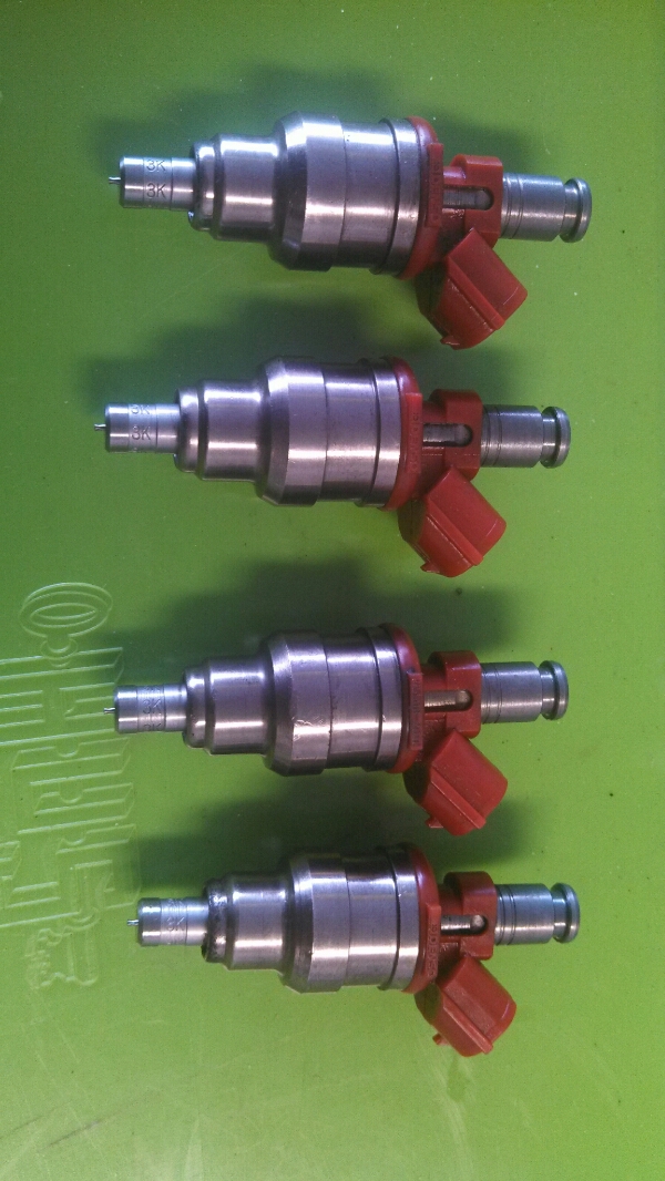 89-91 RX7 red injectors 460cc with part #195500-2010, high impedance. These have been ultrasonically cleaned and tested. All the rubber and plastic pieces were replaced around a year ago.