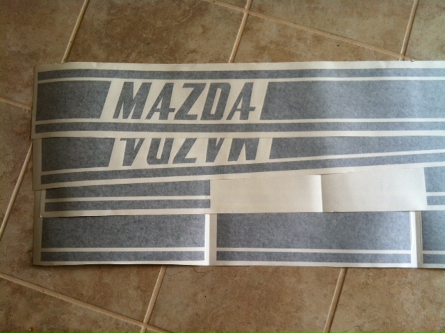 I have a set of black rocker panel stripes in vintage Mazda script. These are specifically designed to fit on a NA or NB. I still like them but I decided to put everything I can towards my turbo build, so these are up for sale or trade.