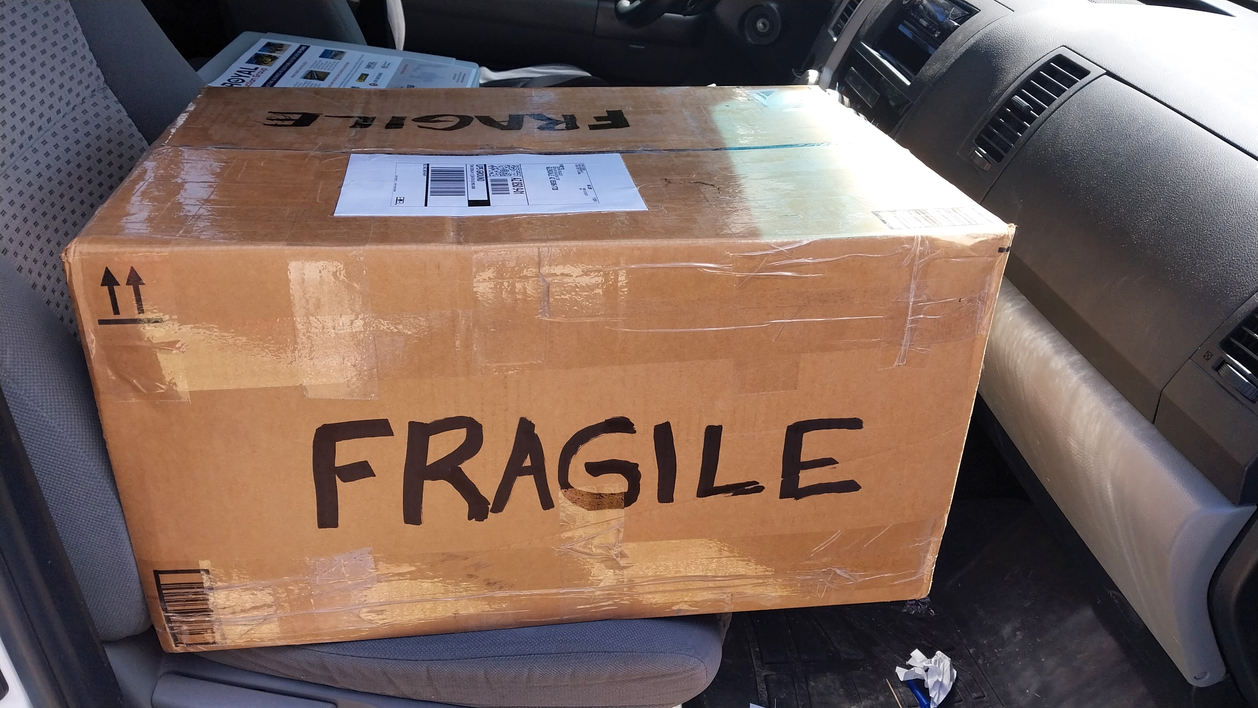 It went out on Friday. Labeled as fragile almost as a joke because I know it will be thrown.