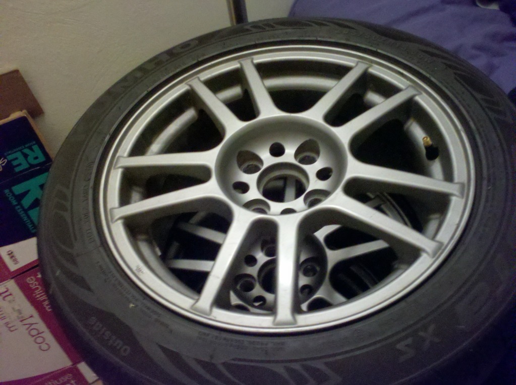 need to sell my nice wheels. interests and priorities are shifting, so i'm giving them up! i'll keep it brief: great condition, some sticky from the stickers left on there but will clean right off. i'll even do it for you. wrapped in 205-50-15 kumho ecsta xs's worn right on the wear bar. still sticky, just put down good auto-x times with them (15th out of 105 pax, and i'm still technically novice). worn evenly. balanced, weights on the inside. m.net price of $350, firm. located in norfolk virginia, off the car and ready to go. have a complete set of 949 racing lug nuts (black) that i'll throw in for an extra $15.