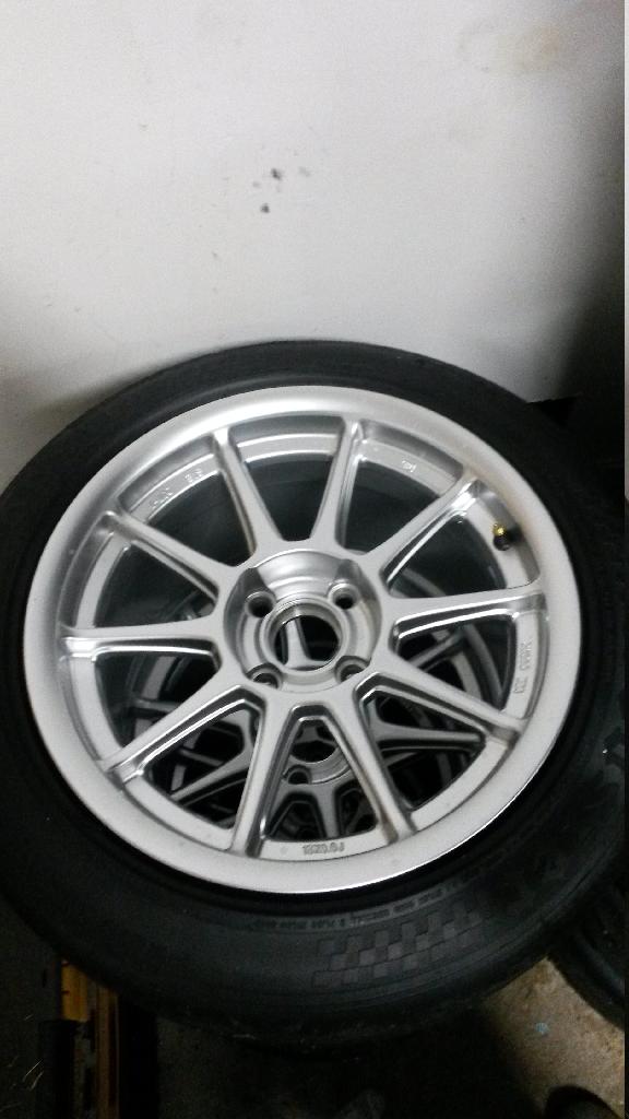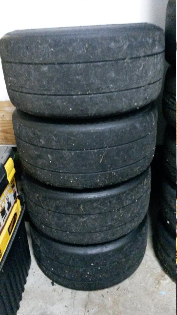 Silver TRM 15x9s with 205 Hoosier SM6 for sale. I used these for a single rainy day of a NASA weekend, and I can't remember if I ran my rain tires for the 3rd session of the day or not. I'm pretty sure these have 2 heat cycles and 13 laps on them, but it might be 3 heat cycles and 20 laps. Yes, 205s do fit on 9s, and they feel ******* glorious.