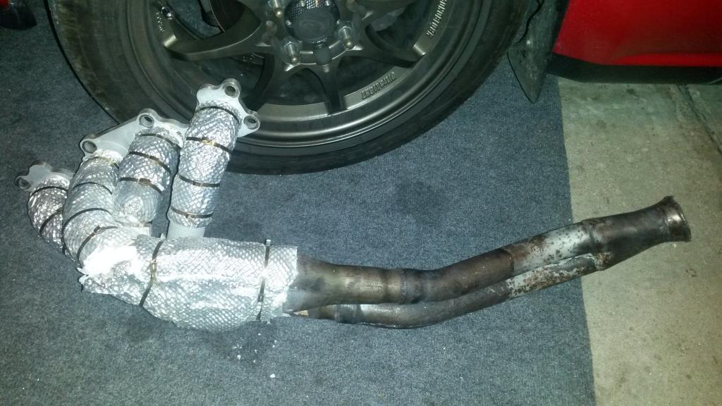 3) Stainless 1.6L header, no cracks, fit perfectly. I think its a OBX that Hhammerly modified. Clears JRSC. I chopped it of at the end, was connected to 2.5" pipe.