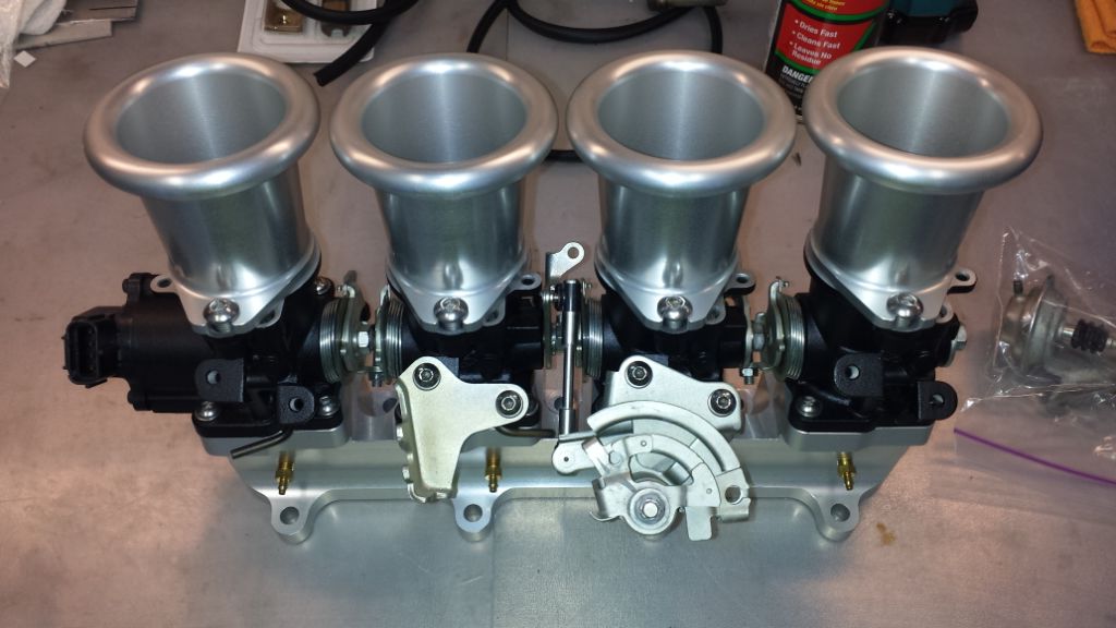 I'm putting the dream on hold for a while--for sale are my Techno Toy Tuning cnc machined horns and intake manifold mated to completely refurbished Toyota Levin 4AG Black Top Individual Throttle Bodies. These will fit a 99-05 head.