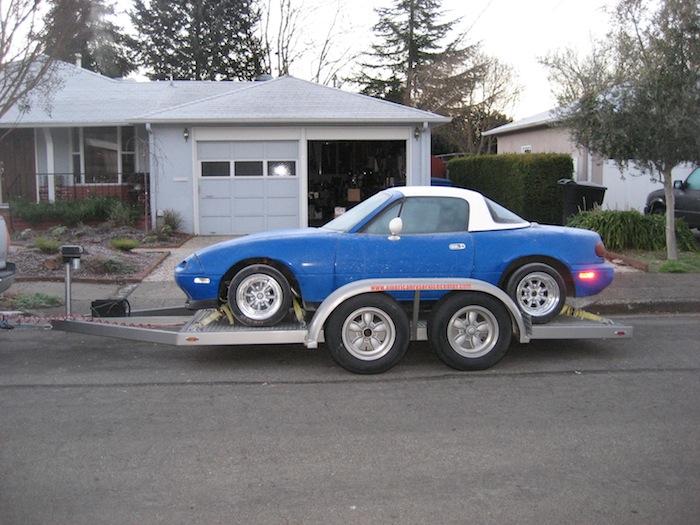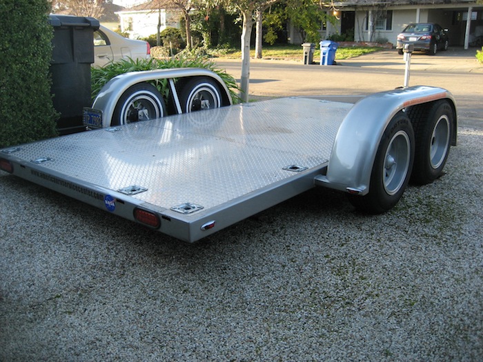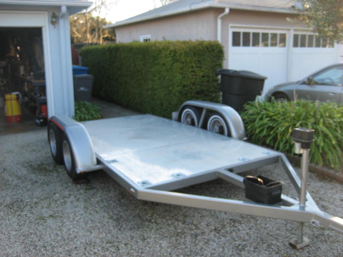 I have a beautiful dual drop axle car trailer with aluminum diamond plate deck for sale. Deck size is 12' x 6 1/2'. Total length tongue to tail is 17 1/2' allowing it to fit in a short driveway, etc. It has an electric lift and comes with a battery that was purchased in 7/11, removable ramps, car tie downs, safety cable and cord for running power to the lights (all of which work fine). As you can see by the tires, they are near new all the way around. The trailer looks really nice with the classic American Racing mags on it. This trailer fit my Miata perfectly though has been used to haul full size V8 hotrods in the past. This is much nicer than your typical trailer! If you are interested enough to come look at it you will purchase it.