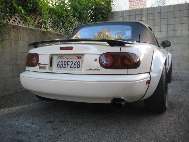 Thanks for the specs on your wheels Bufbodz, it will help a bit with planning, although it looks like a friend who has a shop that preps a bunch of race cars is going to custom fab a new set of upper A arms, and modify the lower A arms with Mazdaspeed bushings rather than urethane, and modify them to deal with the increase in track. I 'll actually be able to have a lot more adjustability in caster and camber, instead of trying to just mount some really wickedly high neg offset wheels and huge spacers. BTW Rob, the flares arrived today, looking beautiful, and undamaged, and HUGE!!