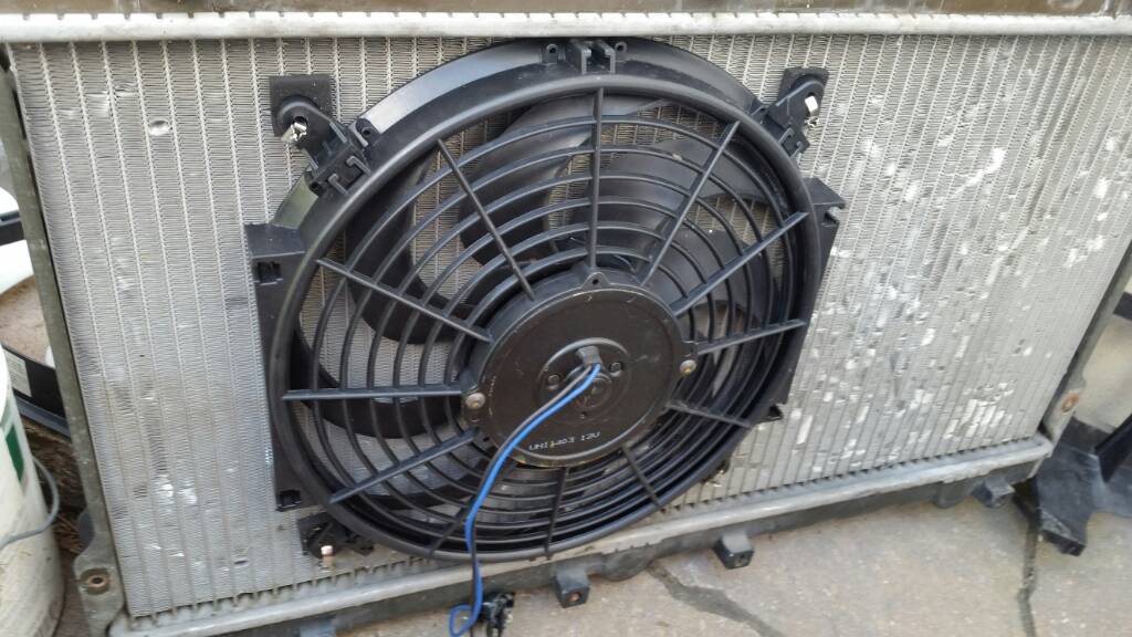 Aftermarket 12" slim fan. Used for maybe a month. Got it from MANL for about $70 IIRC. I forget what brand it is. You'd need to supply your own mounting hardware.