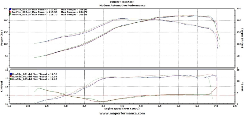 Car made 219rwhp at 12.5psi. Dyno plot: