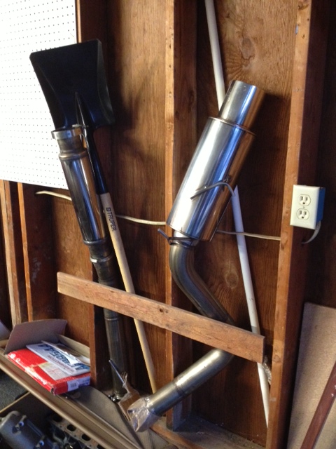 This is all stainless steel, with a for-reals Apexi N1 canister on the back, and a Magnaflow resonator in the middle. All v-bands for maximum ownage. Couldn't build one for twice this price, so buy this one and spend a couple bucks making it work on your setup. Used, but in good shape. Was run under a lowered car so there's some scuffs, but you can't tell once it's installed. Car it was on before mine made 400+ whp (JayL's car!). NOTE: Shovel is not for sale, sorry.