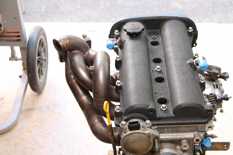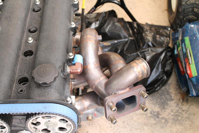 Custom Synapse Motorsport sidewinder style stainless turbo manifold