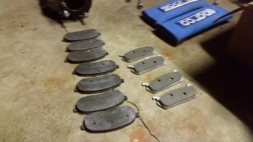 Front pads are used cobalt XR3 1.6 pads, rear pads are some unknown carbotechs, brand new. Price for each 30 shipped.