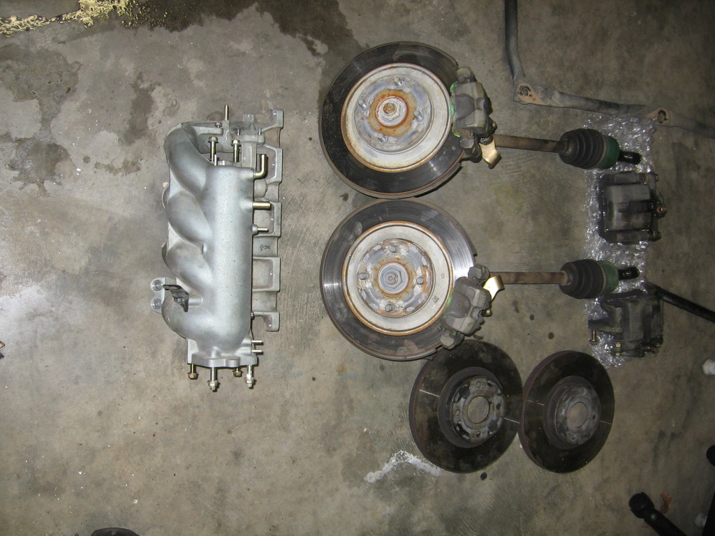 i got a full set of 2003 sport brakes.........calipers, 4 rotors and ebc green stuff pads. the pads still have a **** load of life.