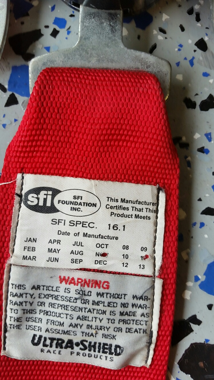 I've got 2 Ultra Shield 5 point camlock harnesses for sale. Both are dated Nov 2011, only good for track days but still work great. These have the pull up lap belts - much easier to adjust than pull down. One was on the passenger side of my Miata and has virtually no use. The other was on the driver side and has more use but still works fine. These are $175 new. Asking $100 plus shipping for each set.