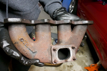- Original Greddy manifold - A relief cut was made down the middle of the flange. I found this to be unnecessary as I had no cracking issues and no warping issues. The manifold slid right off the studs. I believe this was a fix Greddy made on their later kits.