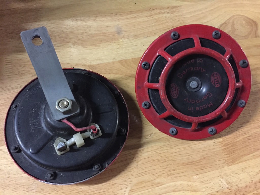 Hella Supertone horns, crazy loud, so you will have to wire in a relay. SOLD