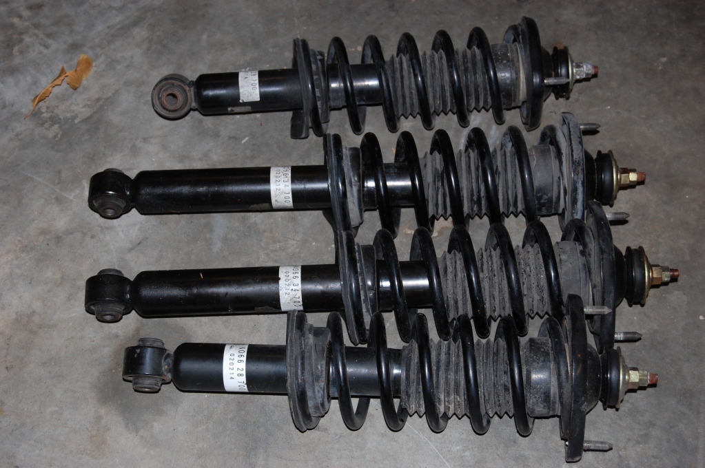 A full set of NB top mounts, springs, and shocks. All assembled, never disassembled. From a 2002 with only 30K miles on them. They were working perfectly when I took them off yesterday. Notice even the dust boots are perfectly intact.