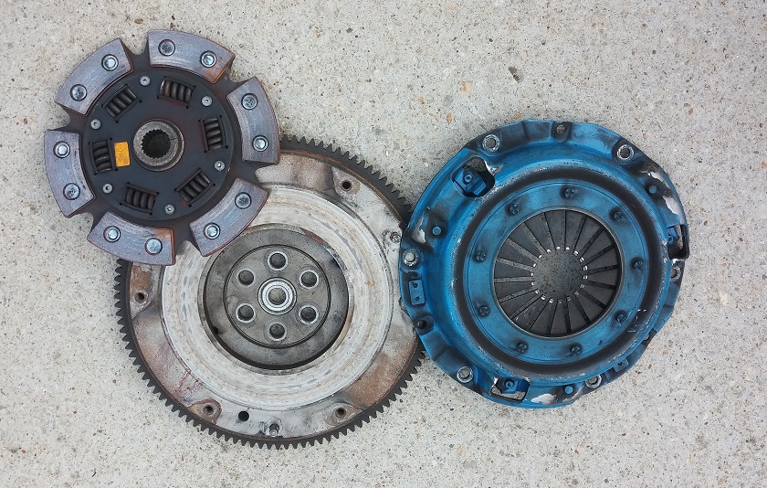 *1.6 clutch set (pressure plate, disc, flywheel). It is an ebay special, I believe FX Stage 3, but they're basically all the same. Limited use, tons of life left. Will fit 90-05 so long as you use the included flywheel (or any aftermarket lightweight 1.6 flywheel). Was used on a ~200hp turbo 1.6, held fine, felt pretty good. Not terribly heavy, sharper engagement than stock but totally drivable in traffic. 1.6 clutch offers less rotating mass and lower MOI compared to 1.8 clutch.