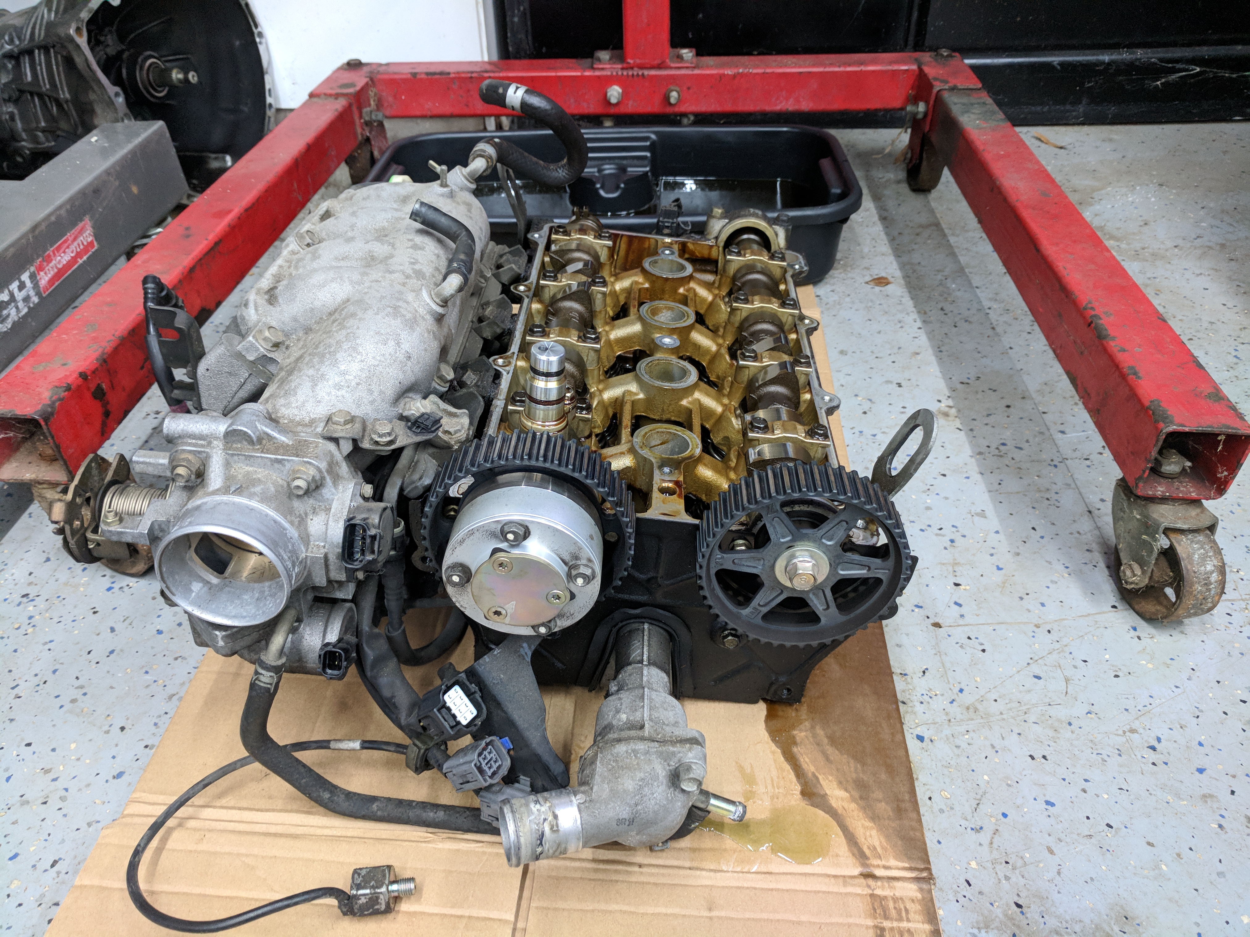 I have for sale a VVT head from a 2003 with approx. 90k miles. Bought a parts car but have no need for VVT. Comes with everything pictured: intake manifold, valve cover, VVT oil line, and upper timing cover. Exhaust manifold may be included if wanted but will be additional cost.