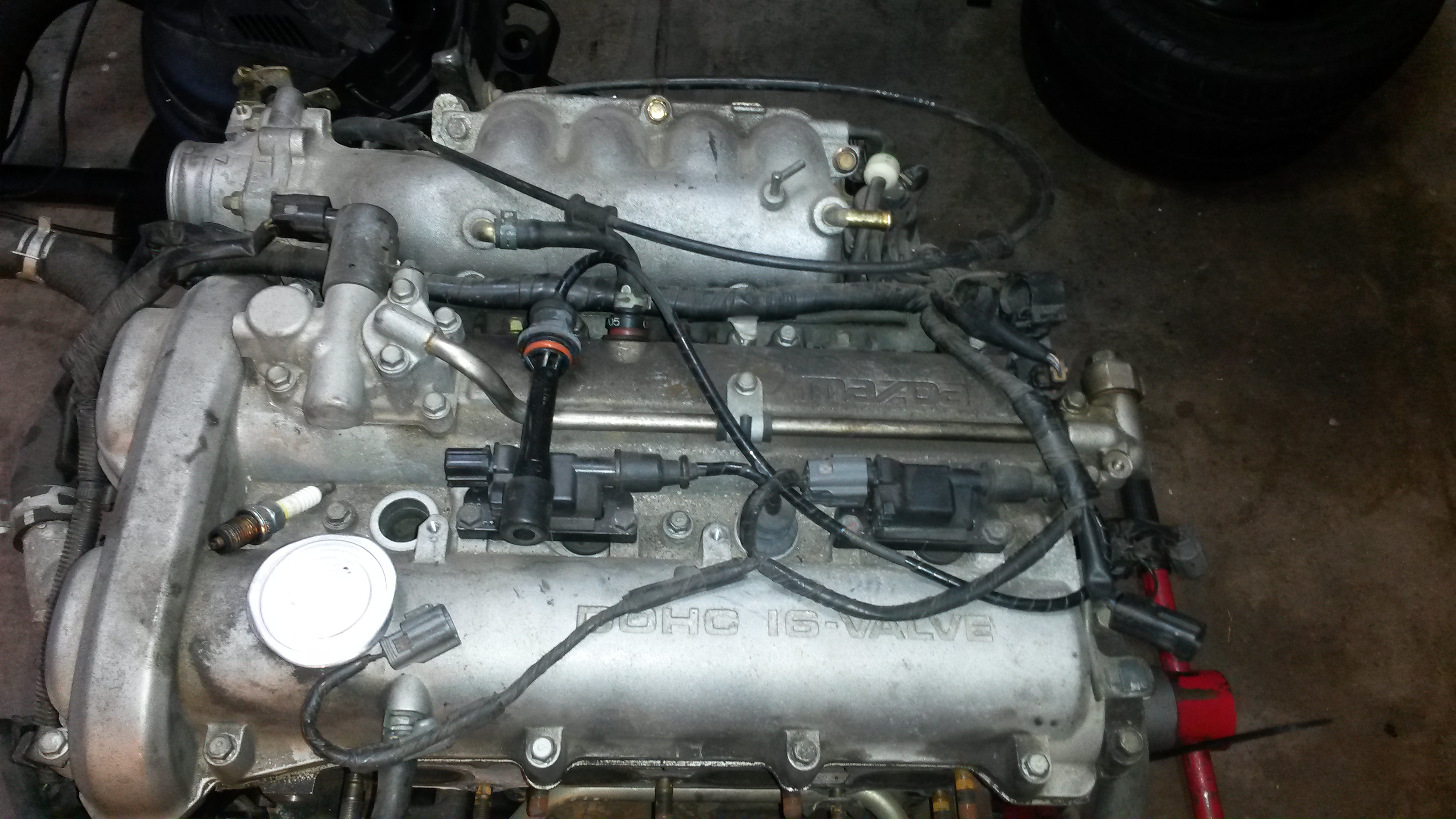 I will keep a few things from it as I found a lower mileage one that is going into my NA miata. I will keep the manifold brace, maybe the throttle body and possibly the accelerator cable, maybe a few sensors but I have to check both engines and see. I also have a stock 1.6L flywheel that you can have if you buy the engine and it does come with the crankshaft dampner which is not on the pictures.