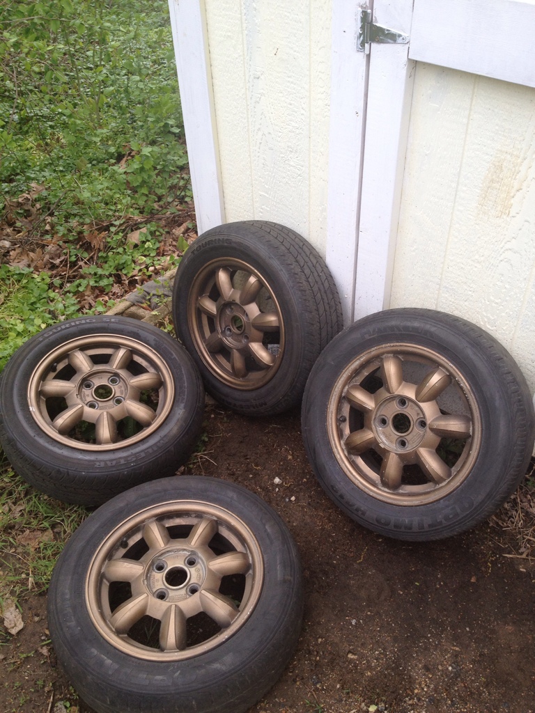 or 513's black. Or other rims let me know what you have. Im located in baltimore must come to pick them up or exchange. Mine are like new no dings or curb rash. Id like the others to be alike. The tires are 205 50 15 and are bald the PO said they were slicks but idk.