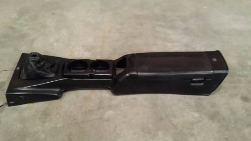 Console, good lid and hinges, OK condition, some scratches. PO had installed a rocker switch by the driver's knee for something. Also has LED at the top front. Includes cupholder. Cupholder has a crack and missing one retaining tab but works fine. $50