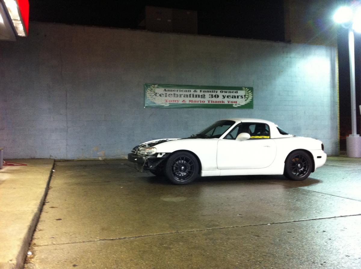 I love these wheels! They're in great shape with typical wear from a year of use. They have 0 curbage whatsoever and the lips still shine up great! Plus, they look right at home on a miata. They have Falken FK452's on them in 215/40/16. The outside is worn about as far as you'd want to wear them but the insides still have a couple months of tread left. I had them flipped at the beginning of this summer and didn't drive the car on these wheels as much as last summer.