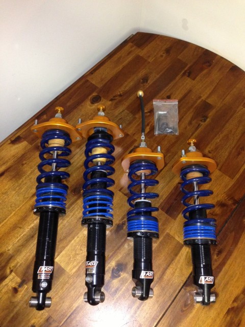 Xida-S with dual springs and Billet Upper Mounts. They're used but in great condition. I bought these this past December 12/29/2012 to be exact. $2,400 shipped inside the U.S. or picked up. No trades and no bs. Serious inquires only please. The spring rates are 700/400. I'm currently looking for the one adjuster **** that isn't shown but I'm throwing in the remote adjuster that is seen in the picture. The best way to get in contact with me is to Pm me. When I ordered these in December I actually ordered them as the Xida Club sport with dual springs and while waiting for my order I decided to add the Biller Upper Mounts. Thanks!