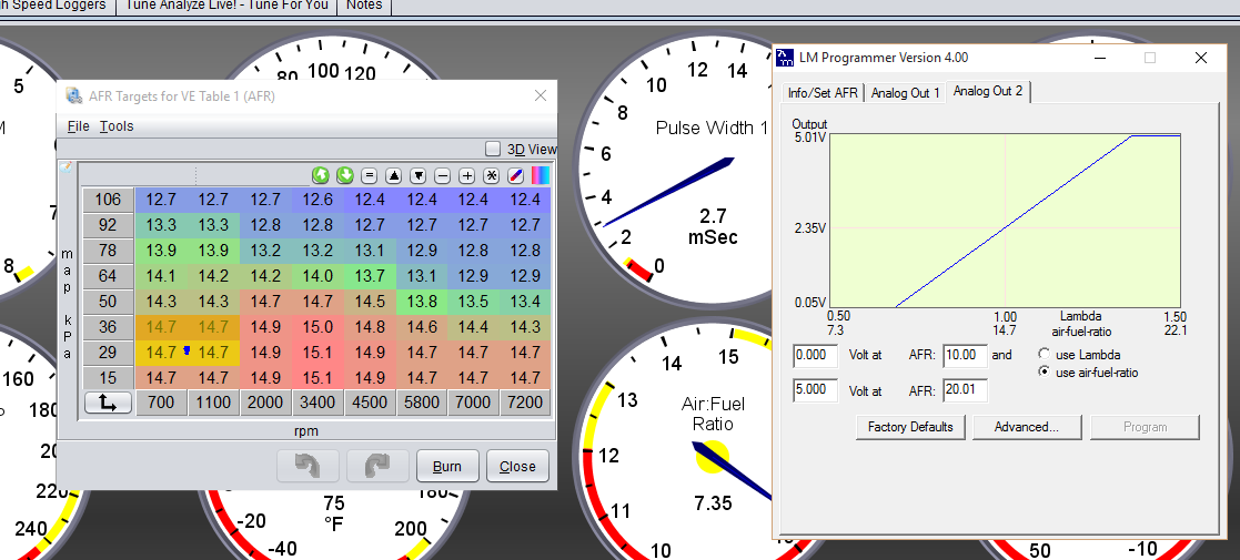 Switched the gauge to read lambda and it reads fine. Switch the controller setting to Innovated 0-5v 10-20 AFR and the afr gauge in TS is stuck on 10 afr