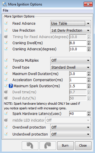 So i think i have narrowed it down to fuel. After doing some investigation with all my tunes, i am starting to believe its a dwell issue, or bad spark. Can someone post their ignition settings from MT? Here's mine, wondering if me dwell settings are correct for the stock ignition, plugs, coils, etc.