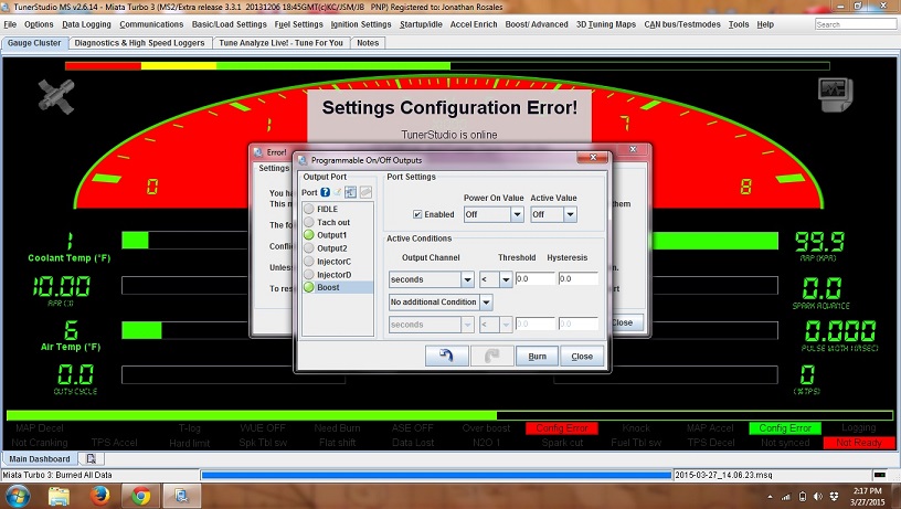 Also Im trying to run the Boost output to my EBC and every time I turn output on I get an error and TS goes crazy, the fan shuts down, etc... Then I turn the Boost output off and everything returns to normal.