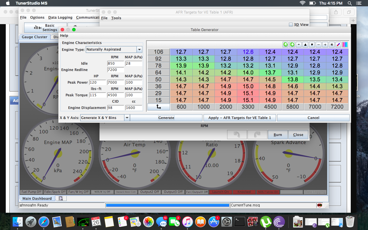 looking for suggestions on what to plug in to generate an AFR target table so i can use auto tune for now until i can get to a professional tuner. Any suggestions?