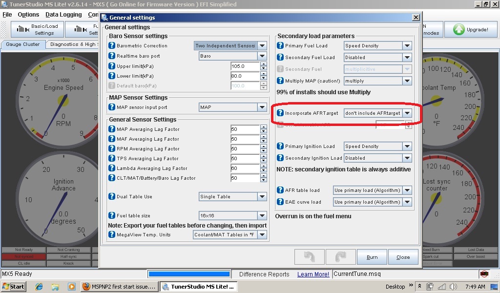 So i configured the EGO to a Linear WB and input those settings. At least the MSPNP2 knows where I'm at now.