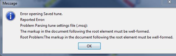 I then get this message: Error opening Saved tune.