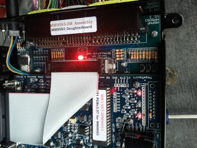 During cranking the board looks like this, the D14 & D16 (iirc) LED's stay on continuously, the middle LED doesn't turn on.