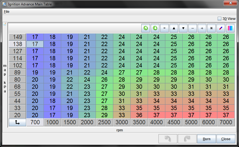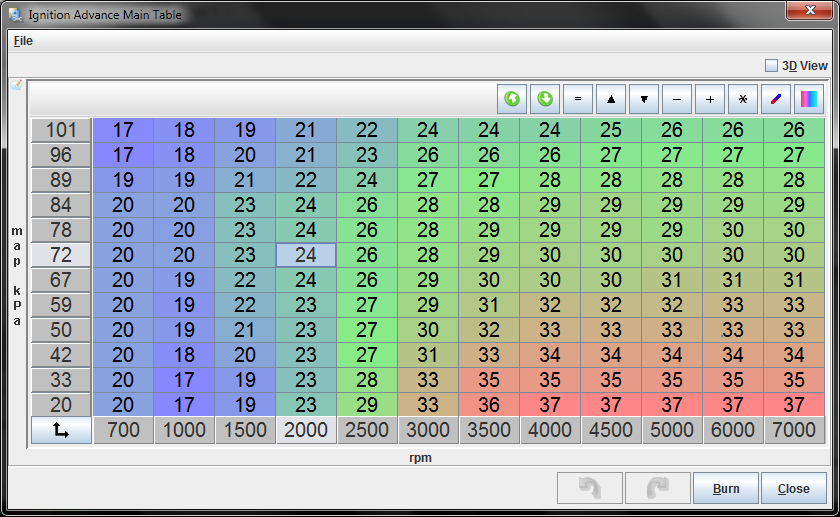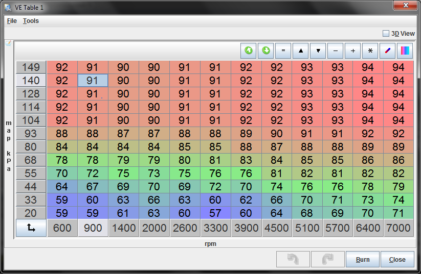 Scale fuel map, AFR and spark table to 6-7 map kpa according to some research thats all the tables need to reach.