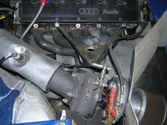 So with all that in mind, I would say it is best to support the turbo from the block with some beefy bracketing. Mitsubishi does this on the Evo--they have a short, beefy brace that ties the turbo to the block.