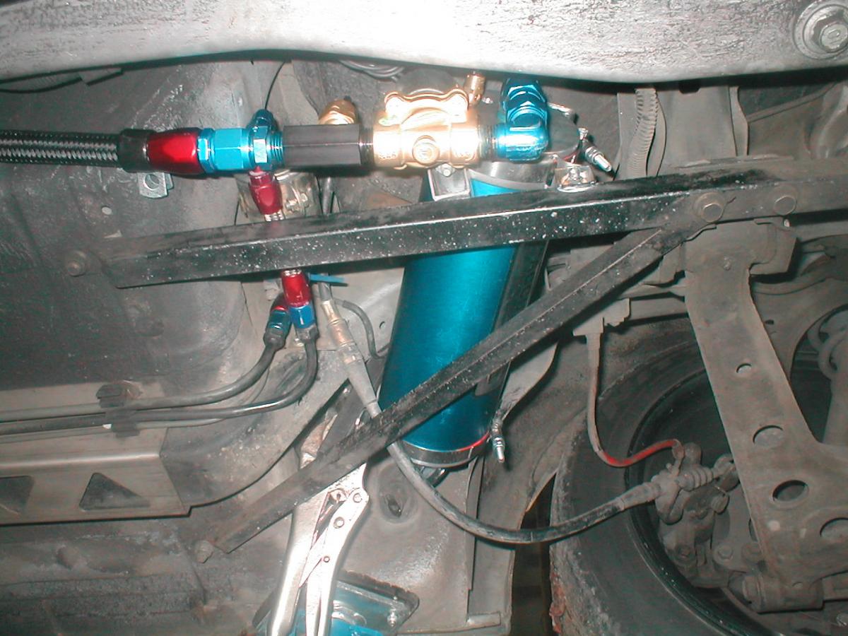 Picked the spot for the accumulator on my Accusump install. It’s going in the area by where the fuel filter is mounted. Small brackets off my home built subframe brace will secure it nicely. Hose will get routed along the PPF using clamps.