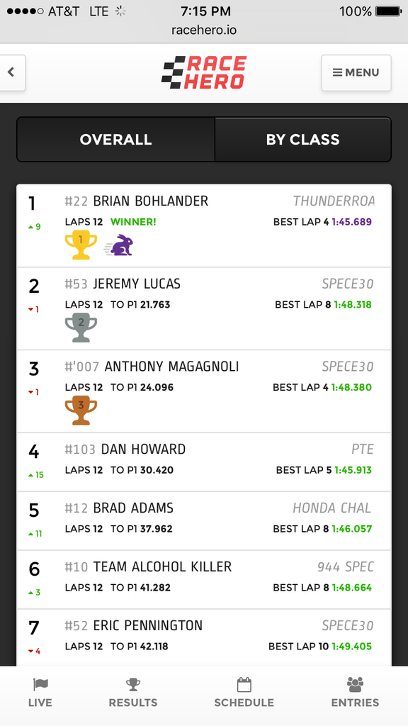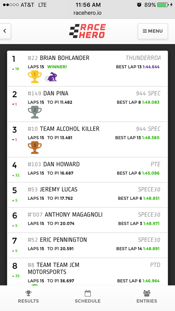 Track felt quite a bit different after the morning rain compared to yesterday's race and I wasn't exactly able to back up my record. A 1:45.9 was my best lap. But I started 35th and finished 4th overall again.