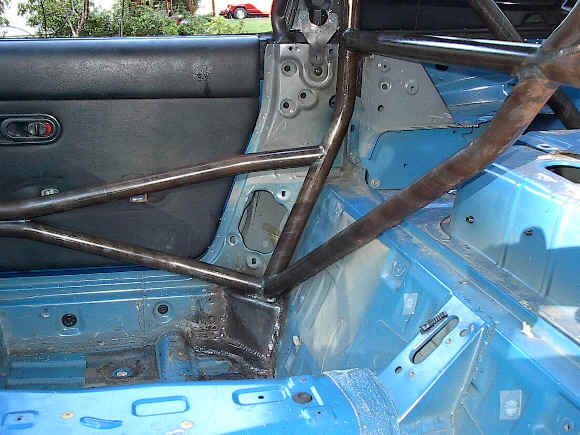 I think the arguement concerning ingress/egress is kinda splitting hairs. The difference in height of the top door bar when comparing my cage and Savington's cage is literally only a couple of inches. Mine is above the door striker where his is below. However, where my top door bar tube attaches to the a-pillar by the dash is actually lower making it easier to swing your feet in. Back to back theyre probably not drastically different. Personally I think its a terrible design flaw to put an s-shaped bend in a tube tho and refused to do it. If I were to run the TC style hoop I think I would actually run a hole saw thru the door jam where the latch is located, and run my tube at an angle from the base plate thru the door jam and locate one bend where the latch is so the bar can be run straight across inside the door skin. If I knew how to use paint this would be easier to describe.