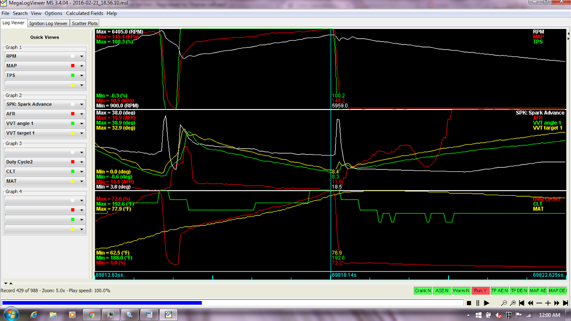 And this is a representative 3rd gear log showing my supercharger like boost curve (wastegate only)