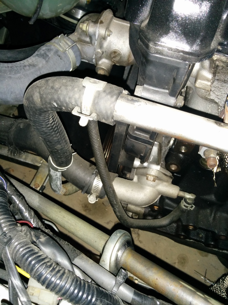 Single outlet from where? You are not understanding everyone. It is really simple. Looking at the firewall, the two heater hose flow paths go like this. Left hose: motor to heater core. Right hose: heater core to mixing manifold. Just like you have it even though you have slightly changed things. Now dissconnect both of the heater hoses, remove your cut and welded steel "hose". Now take a 3 ft piece of 5/8 hose and attach it to where the LEFT heater hose connected to the motor. the other end HAS TO connect to the steel tube which HAS to connect to the mixing manifold. UNLESS you thread tap the hole that the steel tube inserts into and seals by an o-ring. You have no other choice but to keep the steel tube if you cant manage to have the hole threaded, or weld a 5/8 aluminum tube in the hole.