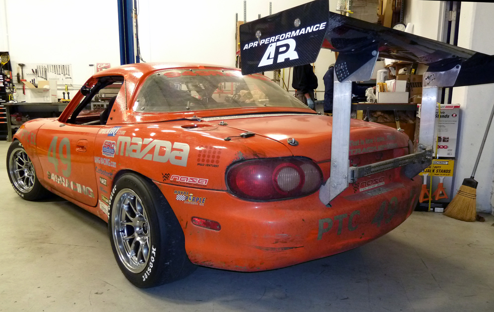 We'll add a Borg EFR 6258 running modest boost, making maybe 260whp in a vast, flat dyno plot. Aero like no one has ever seen on a Miata, and probably DOT tires. We may or may not race on the R80/R100's. We'll have to do some more tire testing and see what our options are.