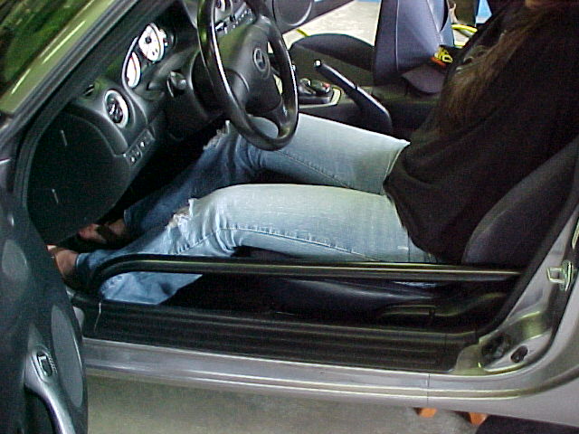 Stock seats (which sit high) still sit low enough for the bars to noticeably affect ingress and egress as seen in the photo above. You can no longer just slide your feet out of the car to your left and then stand up. You have to lift your feet over the bar and then lift your body over the bar as it still sit about an inch above the base of the seat. While this may seem minor it is very noticeable in a DD. This is the main reason I won't be installing these door bars on my car, especially with the exige style seats I now have which sit substantially lower than stock seats.