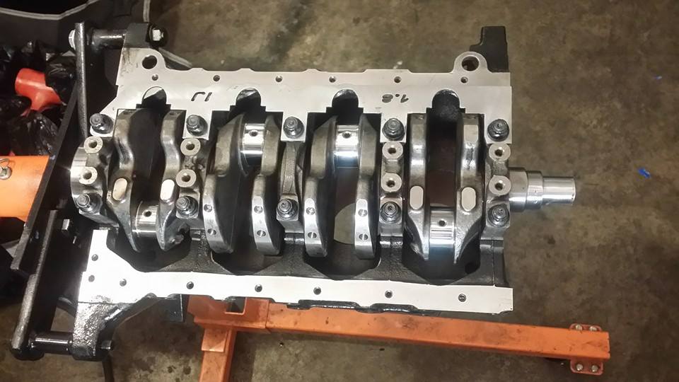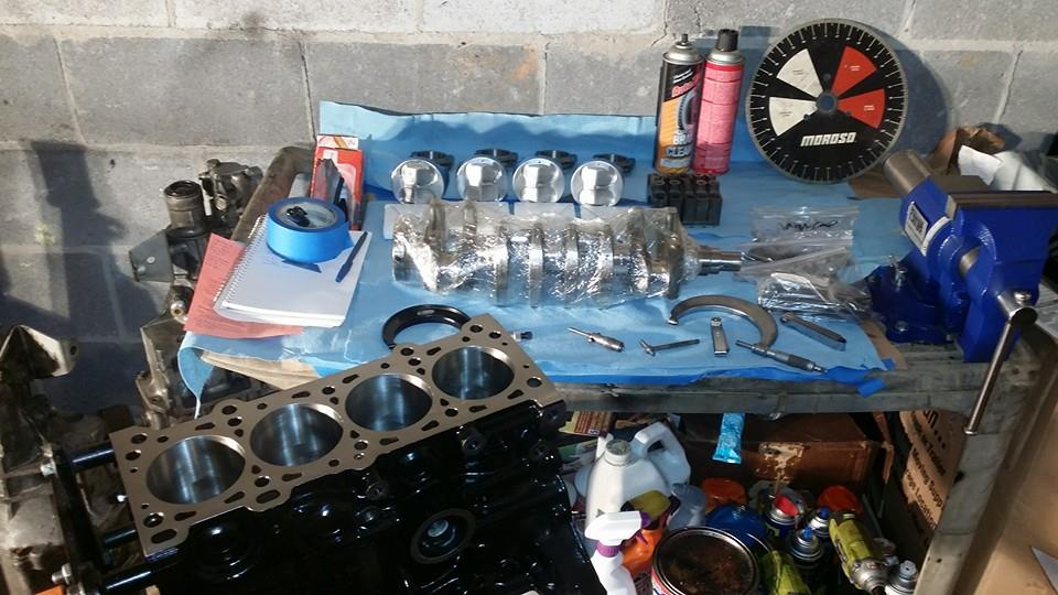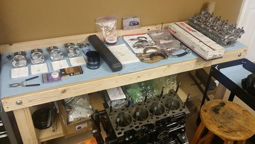 Short block parts after final cleaning before first round of measurements and test fittings.