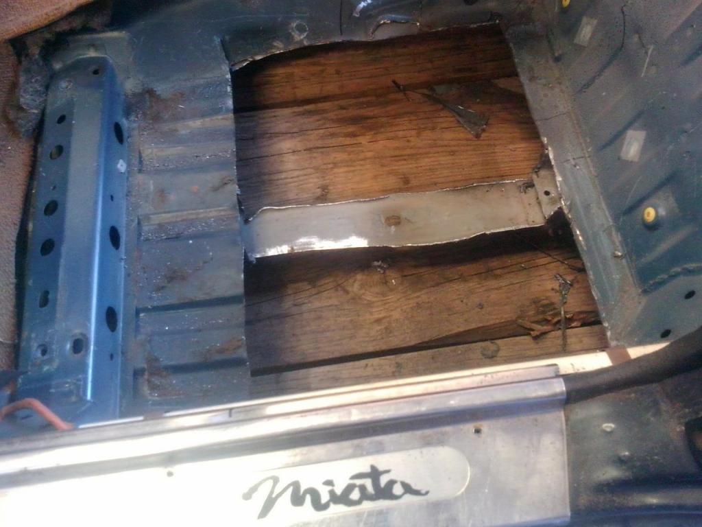 Someone else who has performed some radical surgery on their Miata floor pan. I'm still unsure how you would reinforce this to maintain rigidity after cutting up the frame rail.