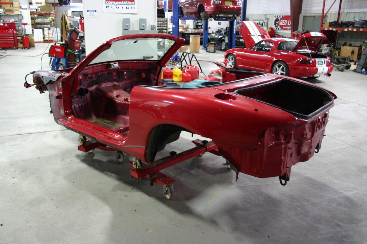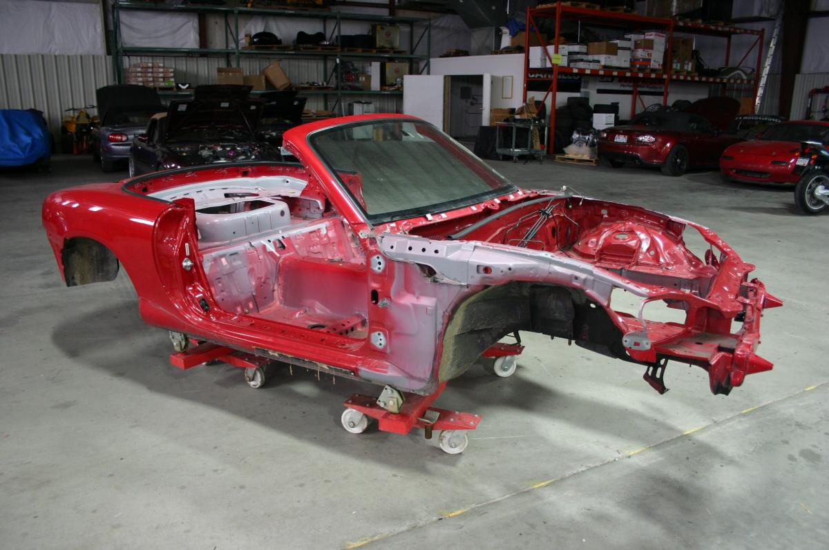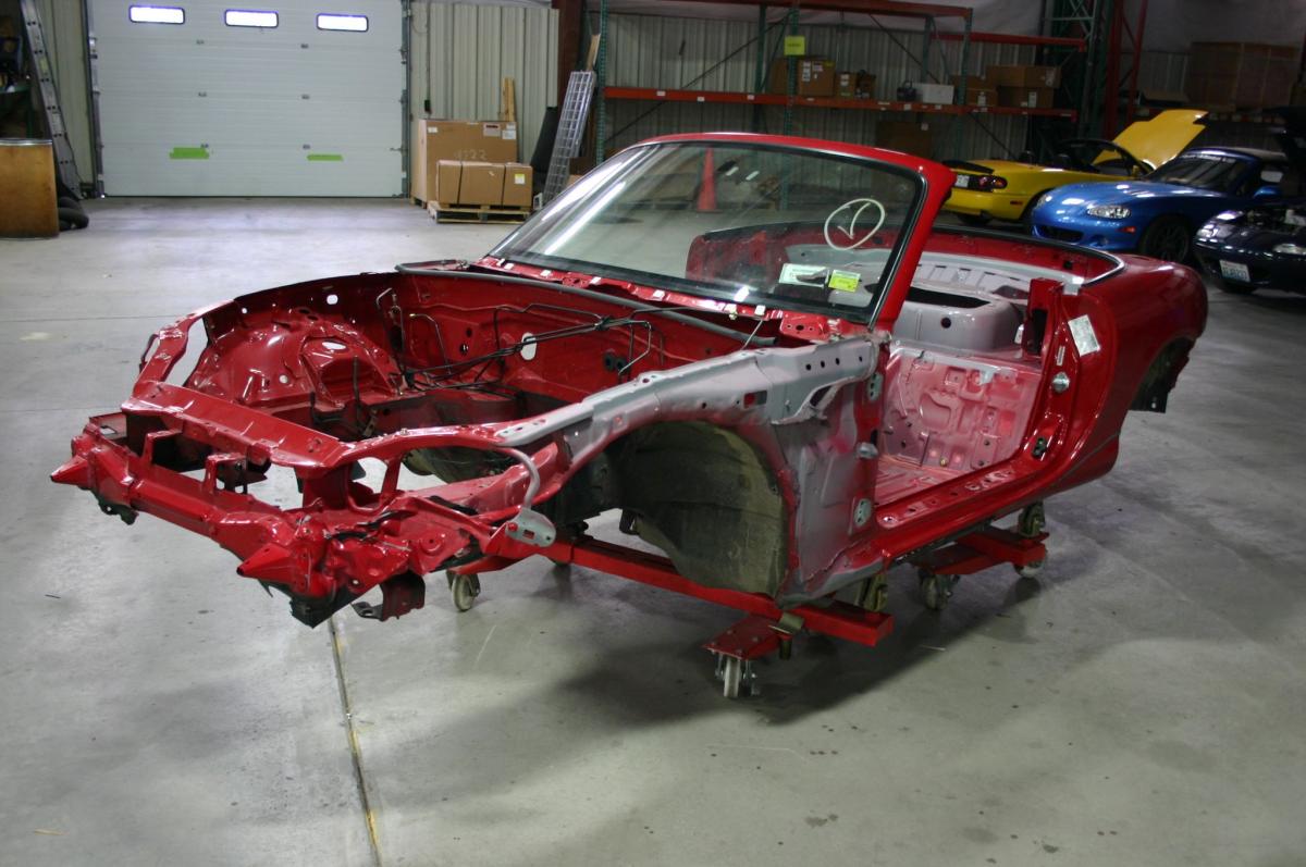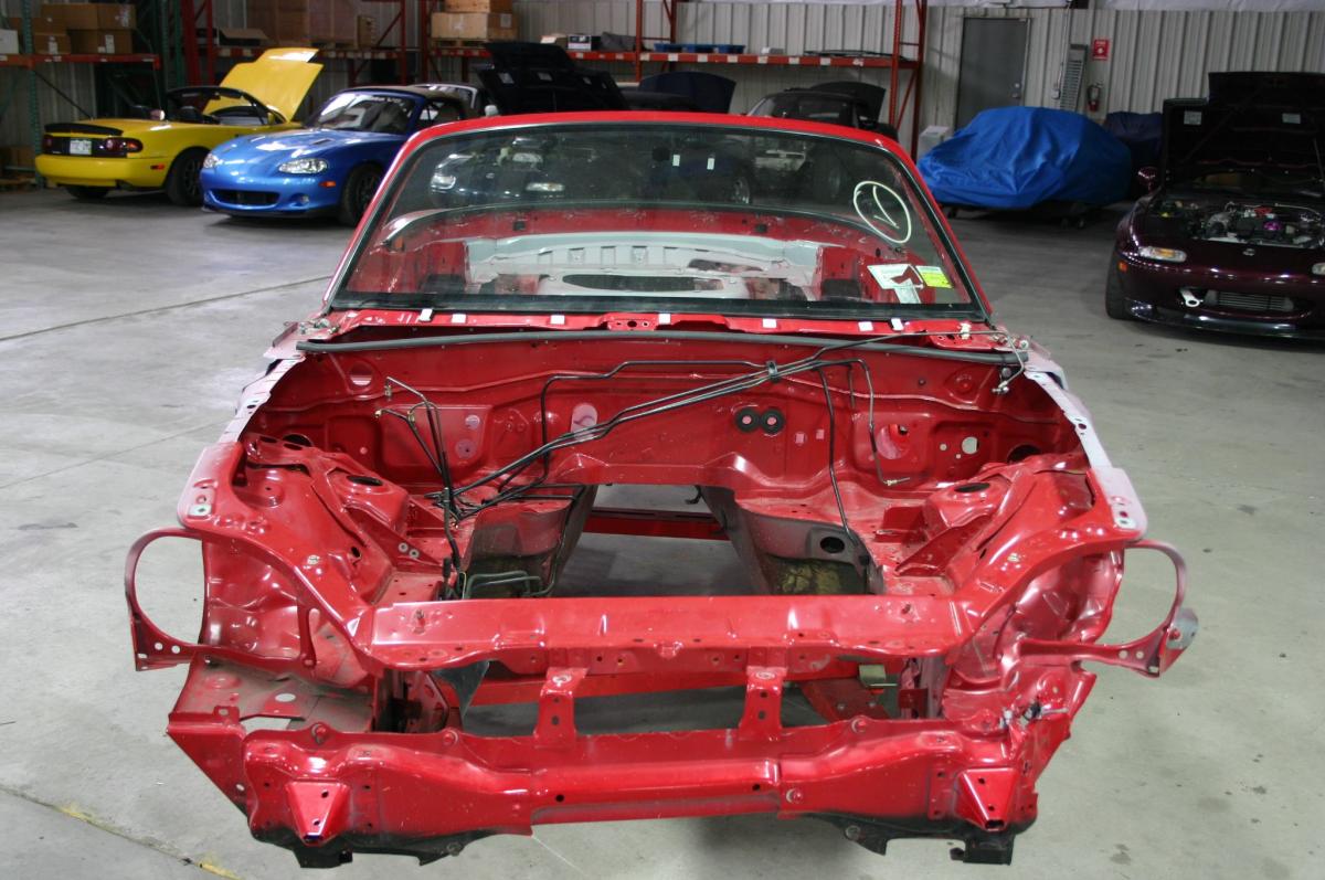 Seriously, we have a 2004 MSM shell that we're giving away. It's fully stripped, the only things on it are a windshield and some hard lines. Perfect for starting a race car build. The fact that it's a MSM VIN means it came with factory forced induction - that might be worth something in NASA classing. It also means it has the reinforced chassis parts that showed up in 2001, such as bigger gussets front and rear and different sheetmetal gauge in the rear bulkhead.