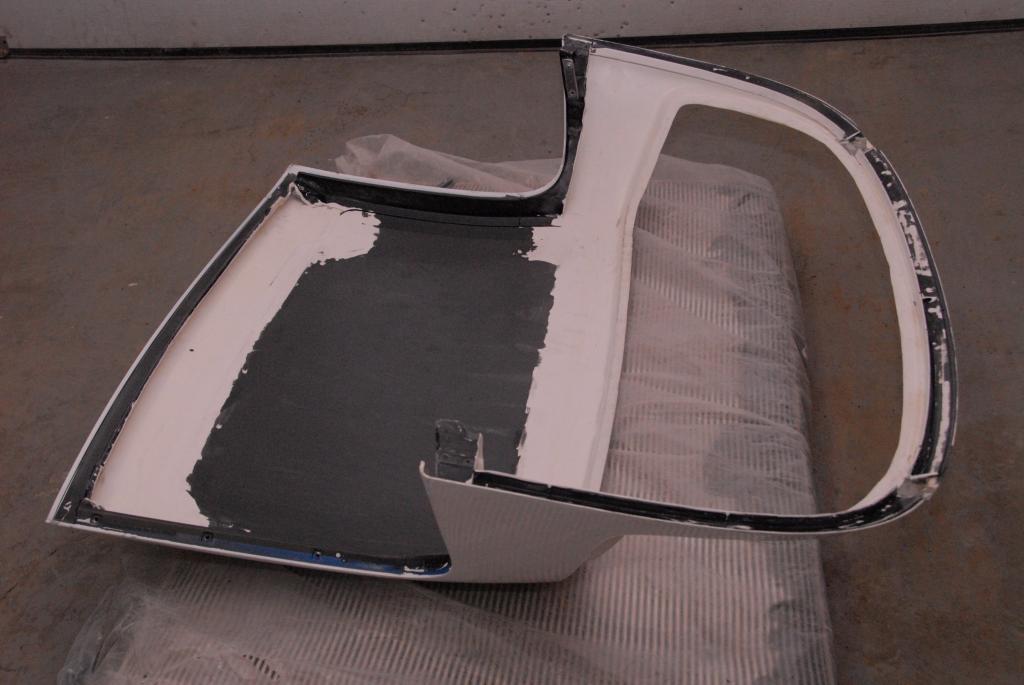 I cant weigh the top, but it is quite light. I can lift it off the car with one hand, there is no back window yet, it will be lexan, and the side widow seals will go back in so it can be sealed up for rain and washing, the windows are already just slip ins. I am quite happy with the results, and probably only a cupple pounds heavy compared to the "race top" There will be some finishing up done after the cage is in, and before I paint it.