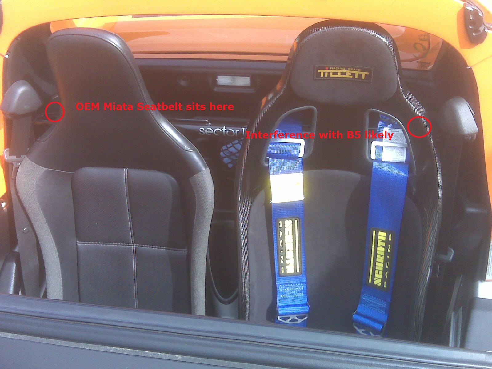 I looked at buying a pair and adding them to our catalog, but $1200 for a single seat vs. $1200-$1300 for a pair of Elise seats makes it a hard sell. I'm also not so sure about the OEM seatbelt compatability. My OEM belts with the Blackbird rollbar sit right next to the Elise seat, and the Tillett is at least a couple of inches wider at that height.