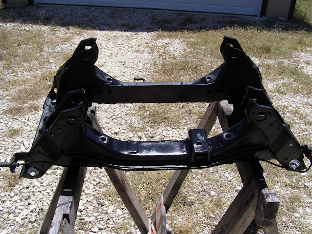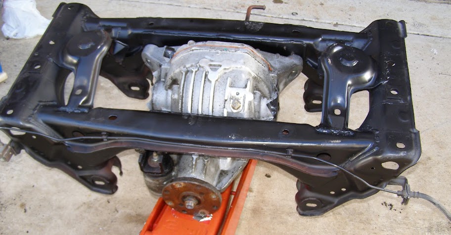 Tomorrow I use rlogan's pressure washer to remove exploded cv grease and 16 years of road grime from the old subframe. Then the suspension gets swapped over to the new subframe. Then it all goes in the car.