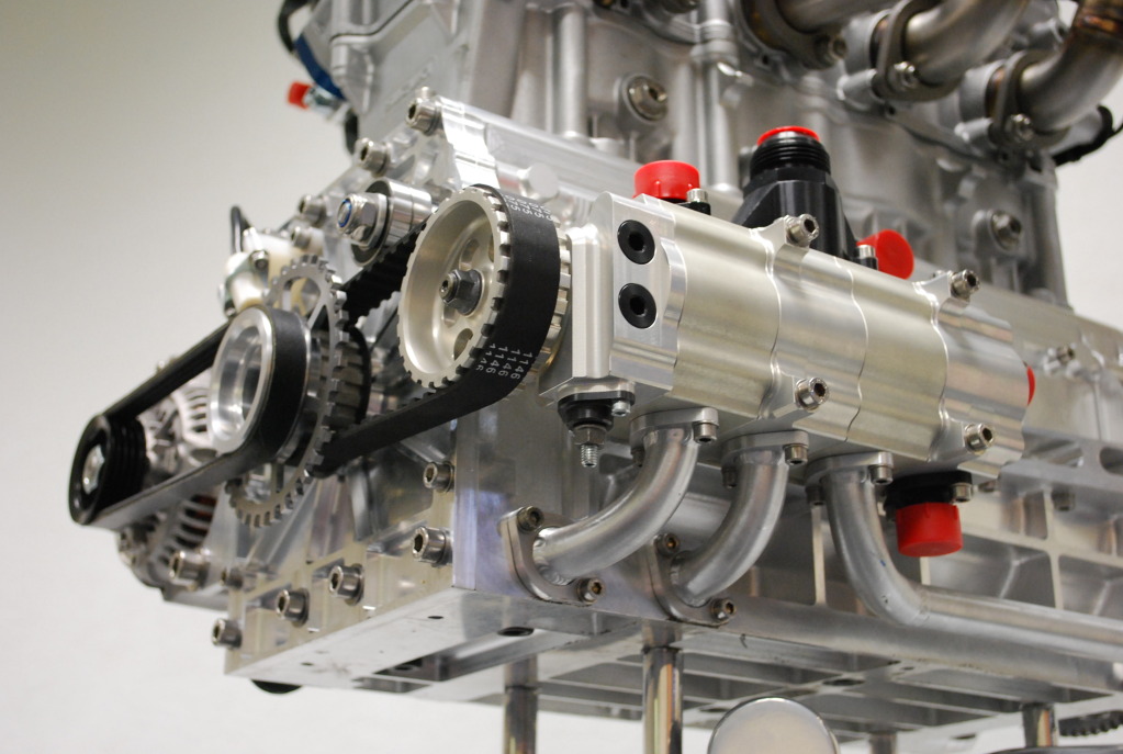 Aluminum cylinder heads w/ splayed & canted valves for max. flow and combustion efficiency