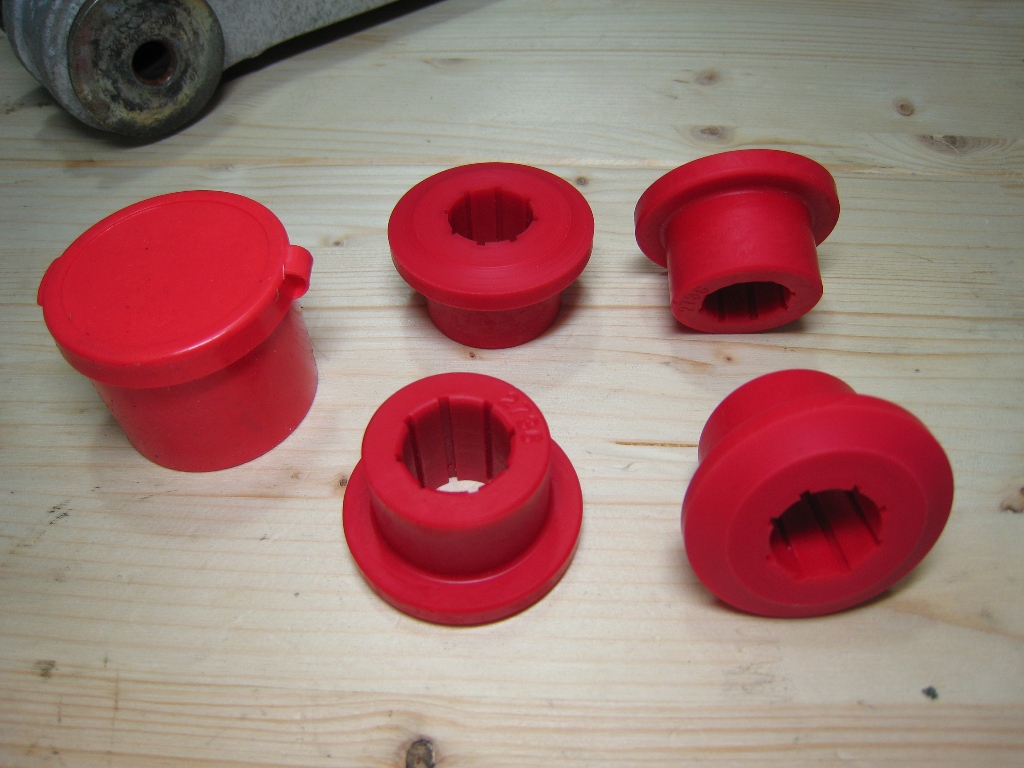 I am not a fan of poly bushings for the reasons previously mentioned but I just installed a set of these on a Porsche 993 and was impressed by the minimum stiction. The bushings seem to have an almost octagon shape inside. If you're going with poly this design works well. I would be tempted to try the same with Delrin. Less surface area creates less drag but enough to support the load.